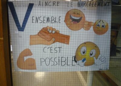 Dans le cadre du programme d’Enseignement moral et civique de 6ème et de la Journée nationale de lutte contre le harcèlement le 7 novembre, les élèves de 6ème du Collège St Joseph ont participé à un concours d’affiches pour faire de la prévention, avec leur professeur.