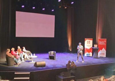 Et voilà 4 élèves du club en virée à Aix-les Bains le mardi 20 mai 2025 pour rejoindre le Centre des Congrès. La matinée a débuté avec un grand jeu de questions sur les différents romans. L’animateur a ensuite présenté les auteurs présents : Sandrine Beau, Johan Heliot, Nathalie Sommers, Carina Rozenfeld et Muriel Zûrcher. Puis place au spectacle « Terre de break », un mélange de slam et de danse.
