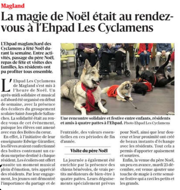 Lundi 22 décembre, nous étions 17 élèves du Collège et du Lycée Saint Joseph à nous rendre à l’Ehpad « Les cyclamens » de Magland. Nous avons débuté l’après-midi dans la salle commune avec plus de trente résidents et un petit concert donné par les élèves musiciens autour des chants de Noël.