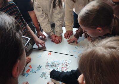 Dans une après‑midi conviviale au collège et lycée Saint‑Joseph, dix équipes mixtes composées chacune de cinq élèves de CM2 de l’école primaire et cinq de 6e (classes B et D) se sont affrontées autour du livre « Enquête au collège » de Jean‑Philippe Arrou‑Vignod : pendant une heure, au son de la cloche signalant chaque rotation d’atelier, les groupes ont enchaîné des défis variés :